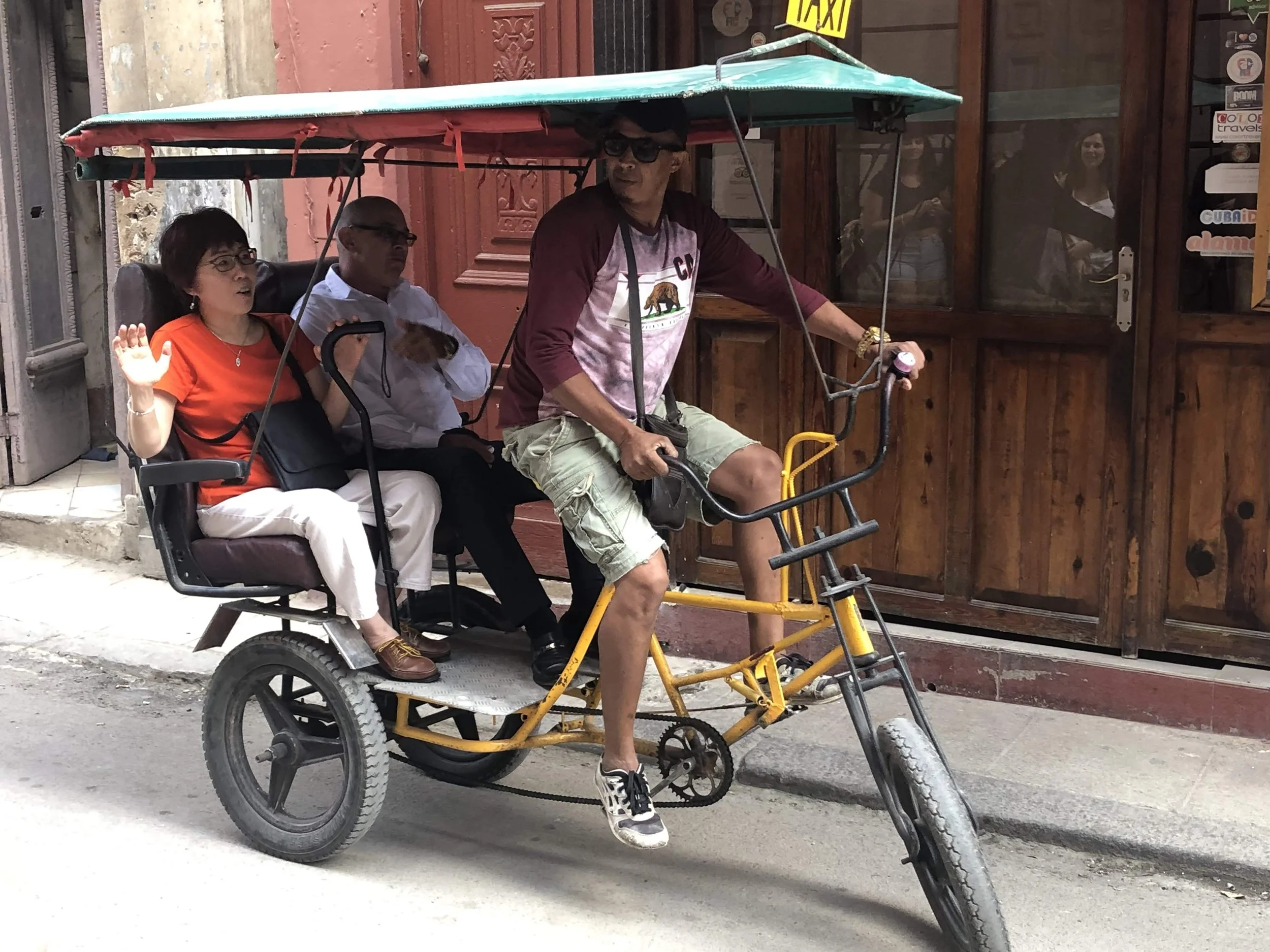 To the left, Lina Lee moves about Old Havana with Cuban friends.